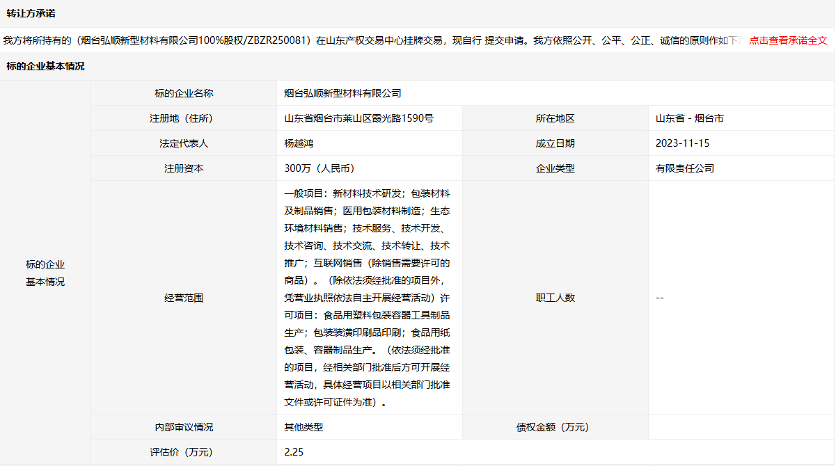 煙臺市景新置業(yè)有限公司50%國有股權(quán)