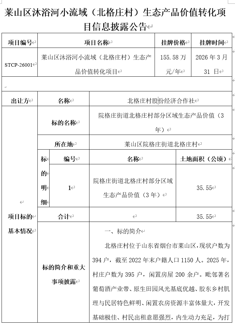 萊山區(qū)沐浴河小流域(北格莊村)生態(tài)產(chǎn)品價(jià)值轉(zhuǎn)化項(xiàng)目
