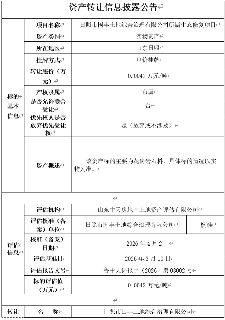 日照市國(guó)豐土地綜合治理有限公司所屬生態(tài)修復(fù)項(xiàng)目